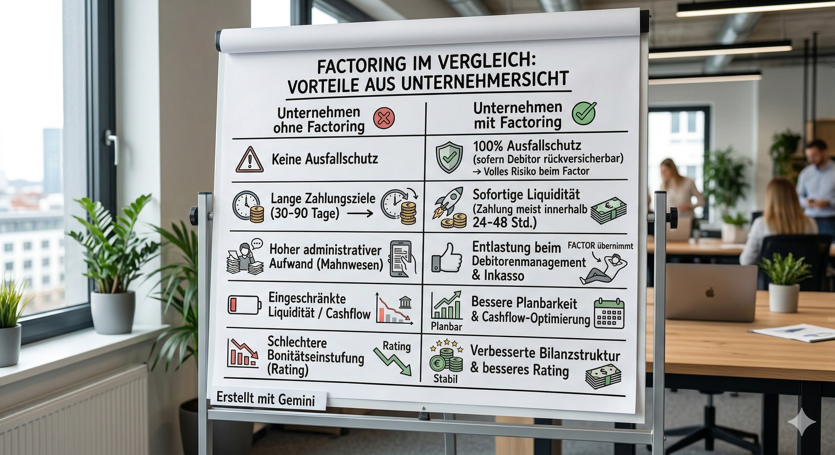 - Liquidität wächst mit Umsatz beim Factoring