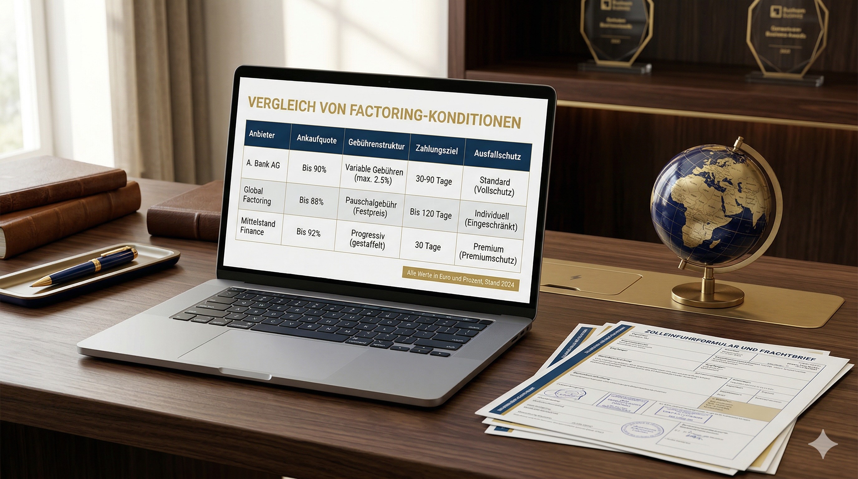 Alle Angaben sind Richtwerte auf Basis aktueller Marktkonditionen (April 2026). Individuelle Angebote hängen von Bonität, Debitorenstruktur und gewähltem Anbieter ab. Preisunterschiede zwischen Anbietern können bis zu 50 % betragen – ein strukturierter Vergleich ist daher unverzichtbar.