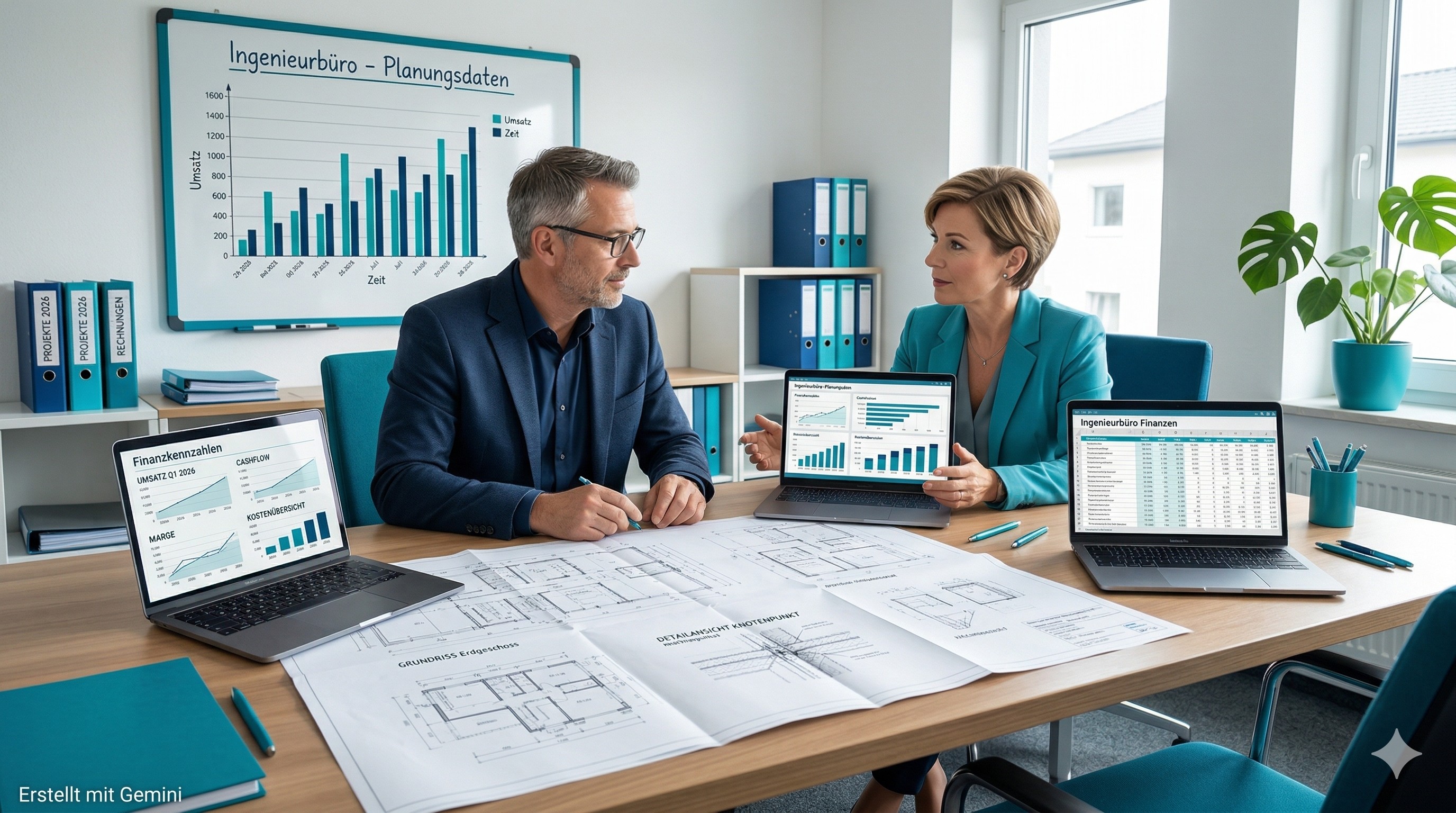 Ein Architekturbüro mit zehn Mitarbeitern führt typischerweise vier bis acht Projekte gleichzeitig – jedes in einer anderen HOAI-Leistungsphase. Das bedeutet: Honorarforderungen entstehen gestaffelt, treffen aber auf denselben monatlichen Kostenblock. Personalkosten, Berufshaftpflicht, CAD-Lizenzen und externe Fachplaner werden unabhängig davon fällig, ob gerade Geld eingeht oder nicht.